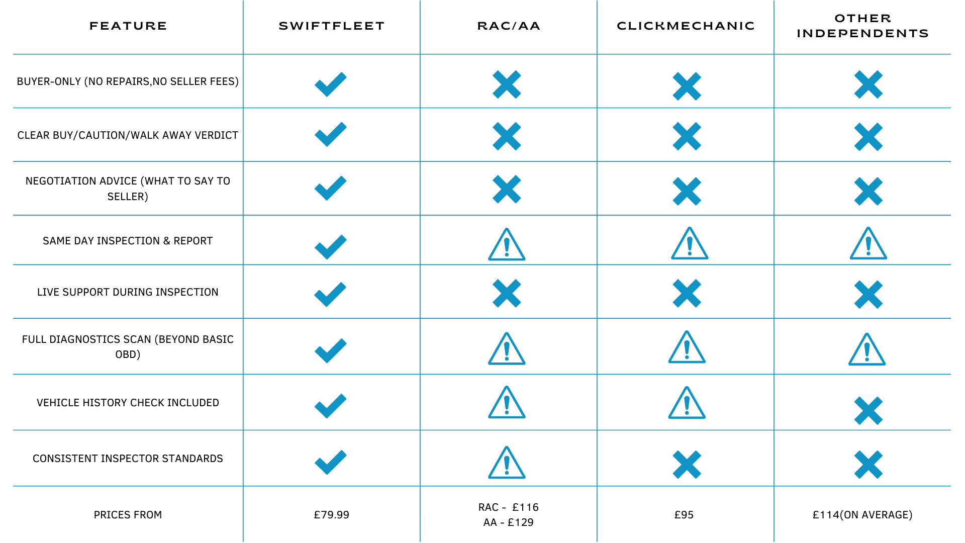 Price Advantage: 30–50% cheaper than AA & RAC inspection list prices